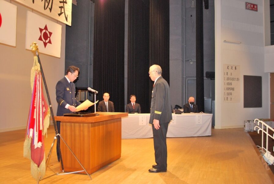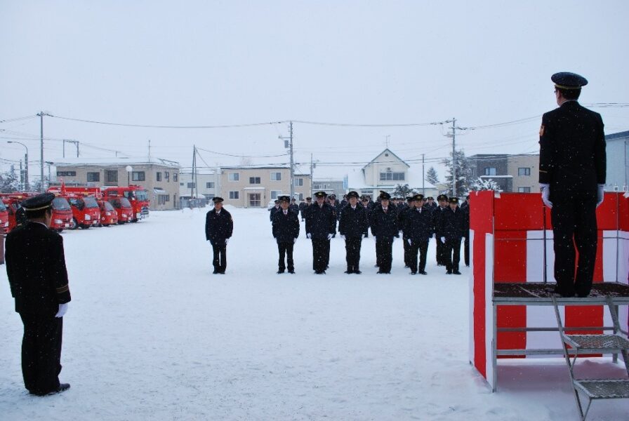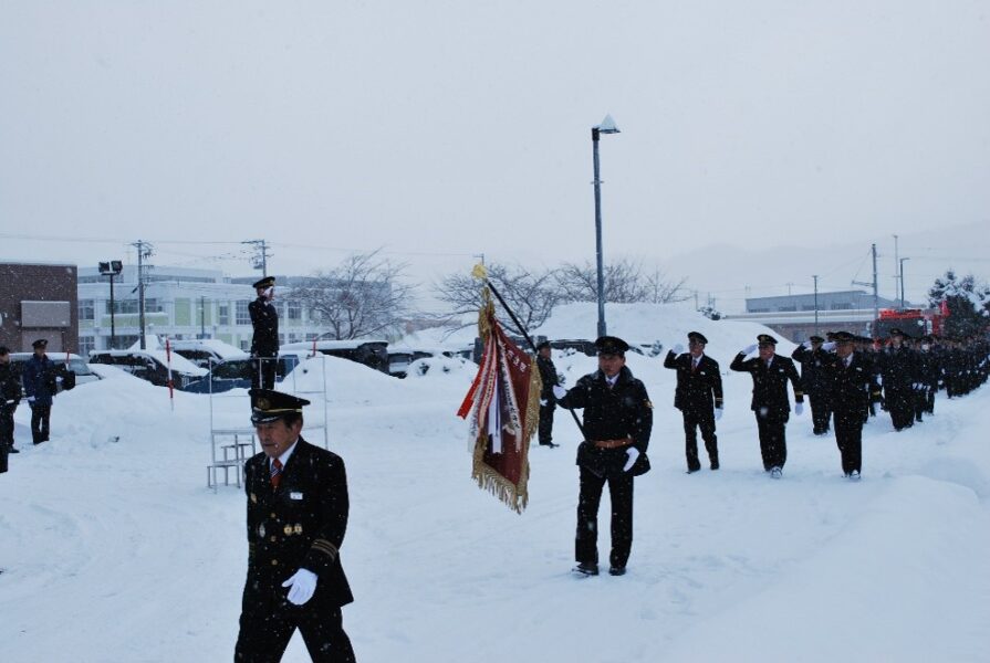 1月5日、北後志消防組合仁木消防団(団員71名)による出初式が挙行され、 決意を新たに新しい一年の始まりを迎えました。 出初式では、始めに統監である佐藤町長が訓辞を述べ、団員を激励。 その後、仁木支署から町民センターの間を分列行進したほか、 町民センターでは各種表彰の授賞式が行われ、佐藤町長や金子団長から受賞者に 表彰状が伝達されました。 式の終了に際し、金子団長が答辞を述べました。